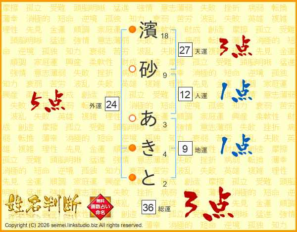 濱砂あきとさんの総運は36画の3点!