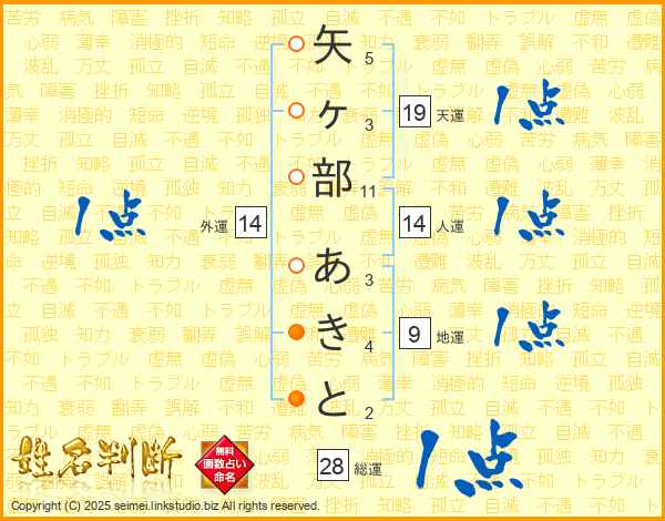矢(5画)ヶ(3画)部(11画) あ(3画)き(4画)と(2画)