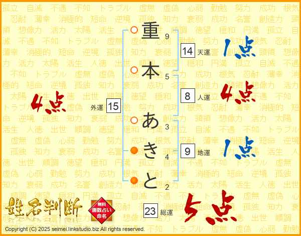 重本あきとさんの総運は23画の5点!