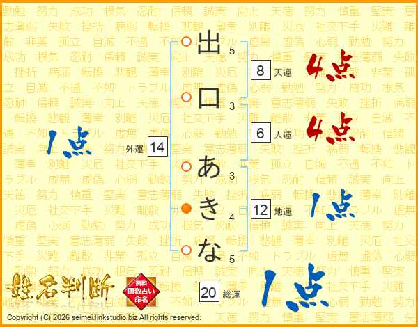 出口あきなさんの総運は20画の1点!