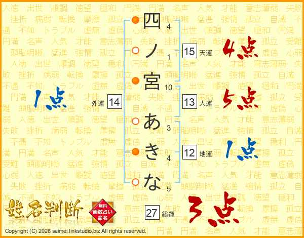 四ノ宮あきなさんの総運は27画の3点!