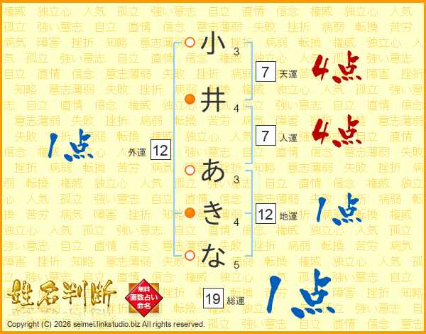 小井あきなさんの総運は19画の1点!