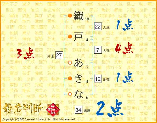 織戸あきなさんの総運は34画の2点!