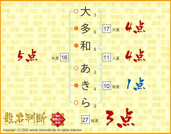 大多和あきらさんの総運は27画の3点!