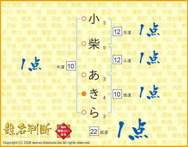 小柴あきらさんの総運は22画の1点!