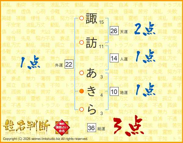 諏訪あきらさんの総運は36画の3点!