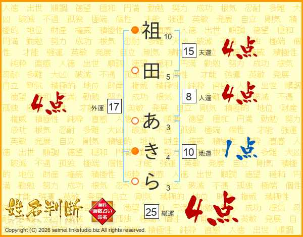 祖田あきらさんの総運は25画の4点!