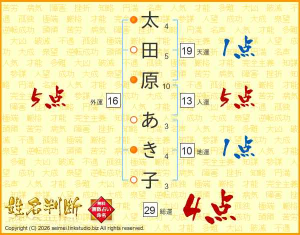 太田原あき子さんの天運は19画の1点!