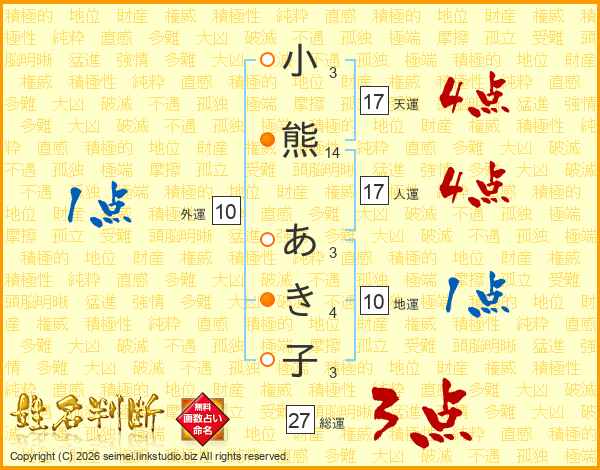 小熊あき子さんの総運は27画の3点!