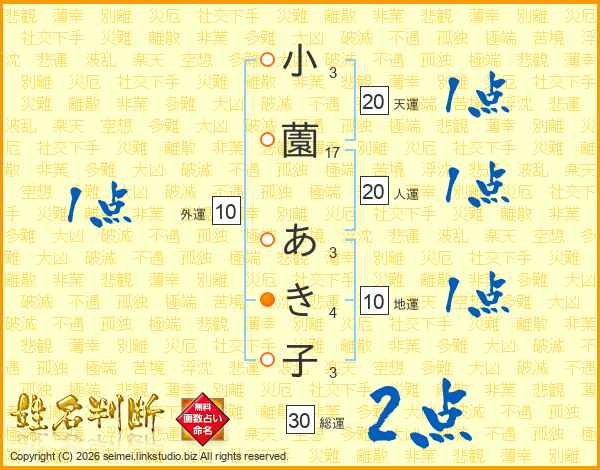 小薗あき子さんの天運は20画の1点!