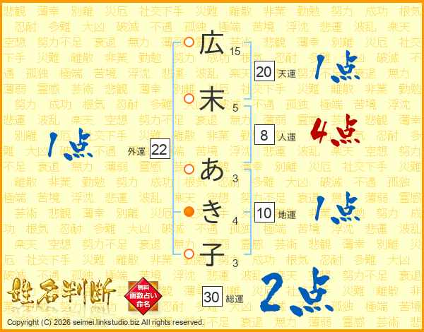広末あき子さんの天運は20画の1点!