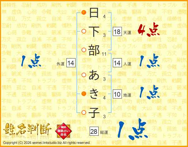 日下部あき子さんの天運は18画の4点!