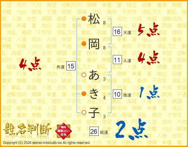 松岡あき子さんの総運は26画の2点!