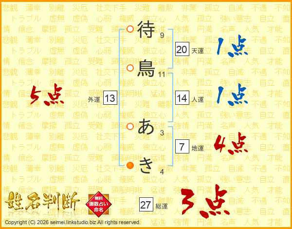 待鳥あきさんの総運は27画の3点!