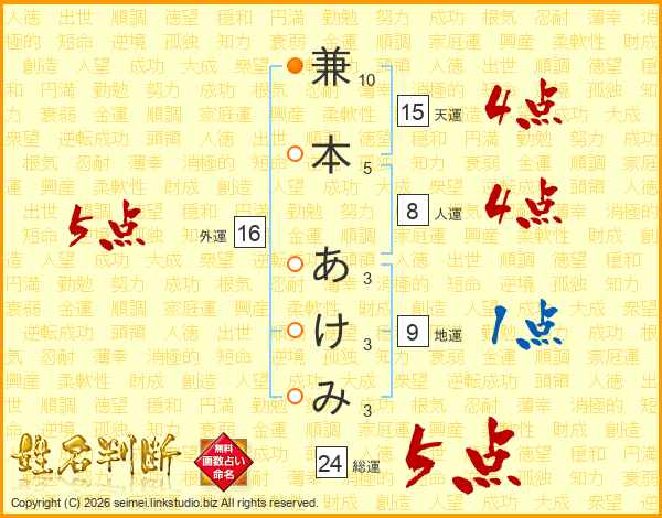 兼(10画)本(5画) あ(3画)け(3画)み(3画)