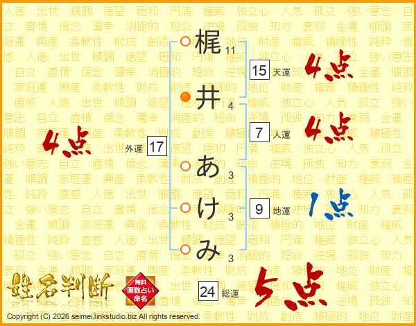 梶(11画)井(4画) あ(3画)け(3画)み(3画)