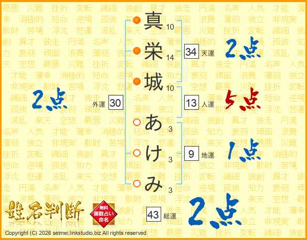 真栄城あけみさんの総運は43画の2点!