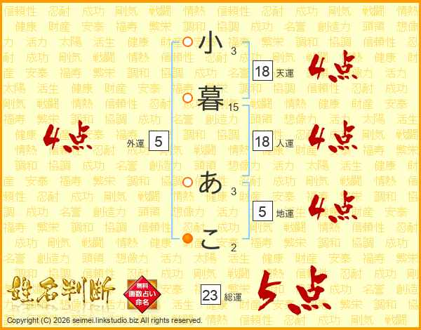 小暮あこさんの総運は23画の5点!