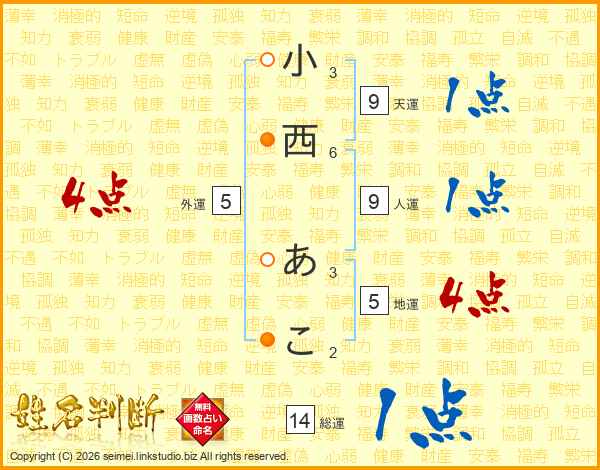 小西あこさんの総運は14画の1点!
