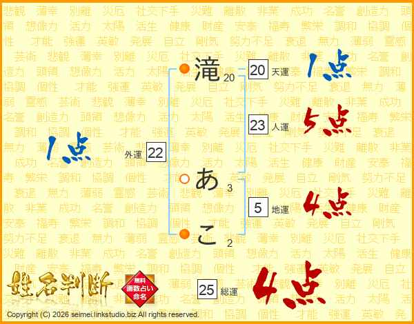 滝あこさんの総運は25画の4点!