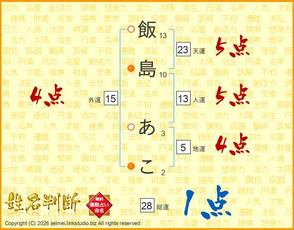 飯島あこさんの総運は28画の1点!