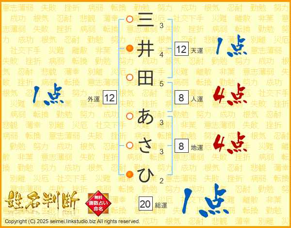 三井田あさひさんの天運は12画の1点!