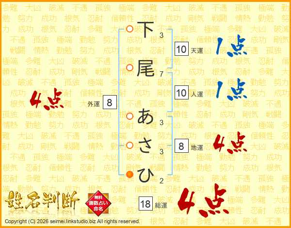 下尾あさひさんの総運は18画の4点!
