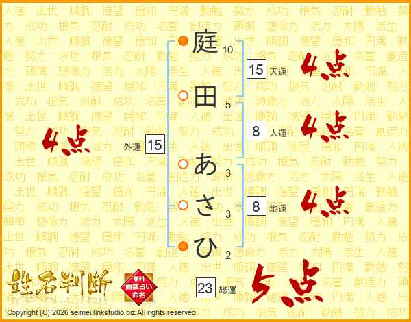 庭田あさひさんの総運は23画の5点!