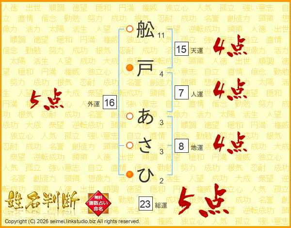 舩(11画)戸(4画) あ(3画)さ(3画)ひ(2画)
