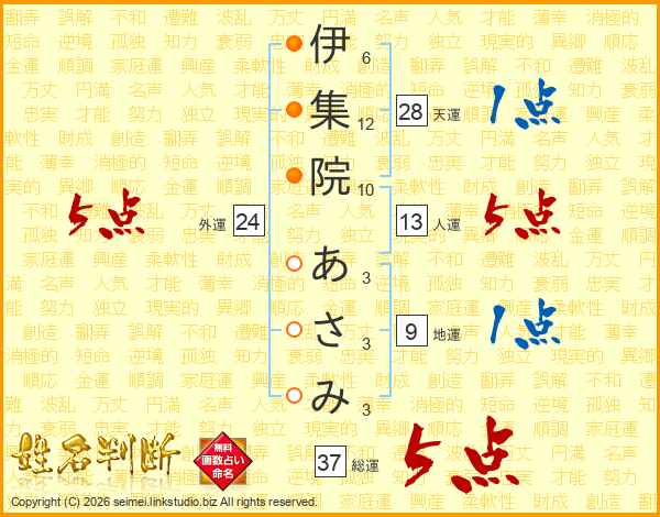 伊集院あさみさんの総運は37画の5点!