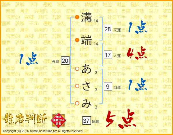 溝(14画)端(14画) あ(3画)さ(3画)み(3画)