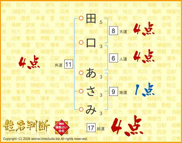 田口あさみさんの総運は17画の4点!