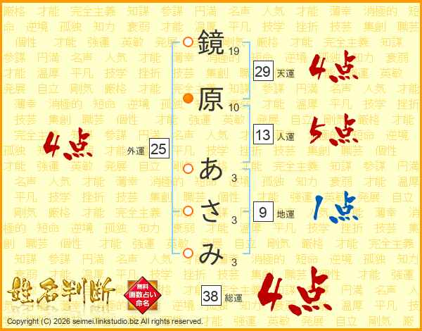鏡(19画)原(10画) あ(3画)さ(3画)み(3画)
