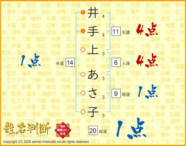 井手上あさ子さんの天運は11画の4点!