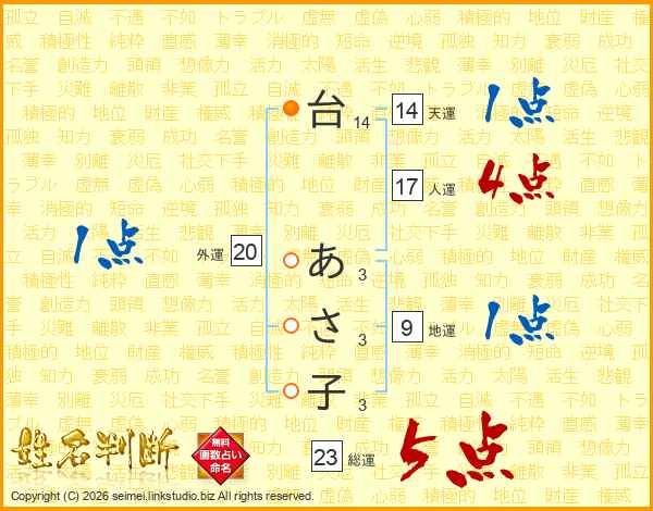 台あさ子さんの総運は23画の5点!