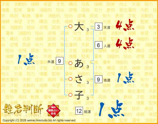 大あさ子さんの総運は12画の1点!