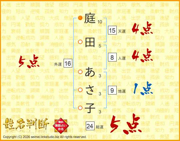 庭田あさ子さんの外運は16画の5点!