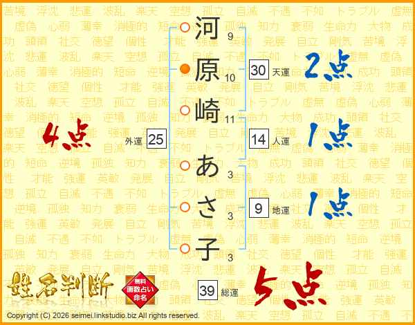 河原崎あさ子さんの外運は25画の4点!