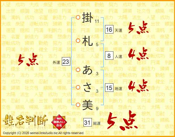 掛札あさ美さんの総運は31画の5点!
