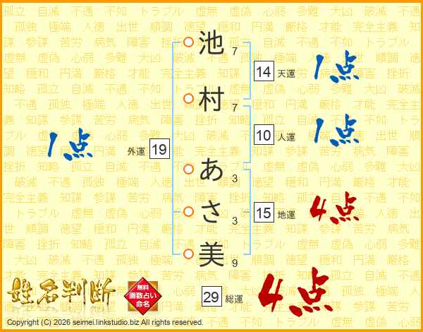 池村あさ美さんの総運は29画の4点!