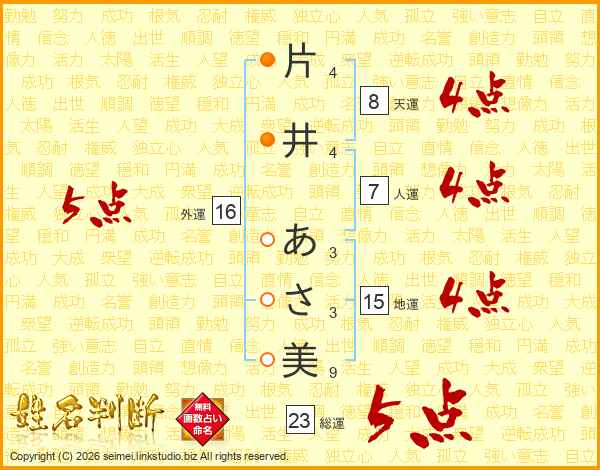 片井あさ美さんの総運は23画の5点!