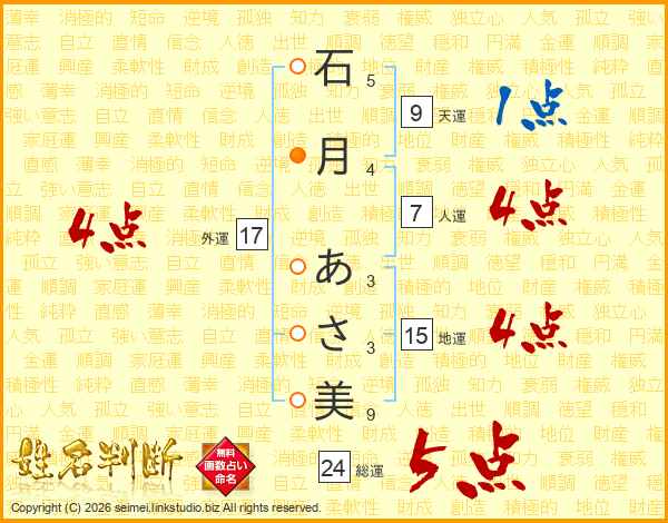 石月あさ美さんの外運は17画の4点!