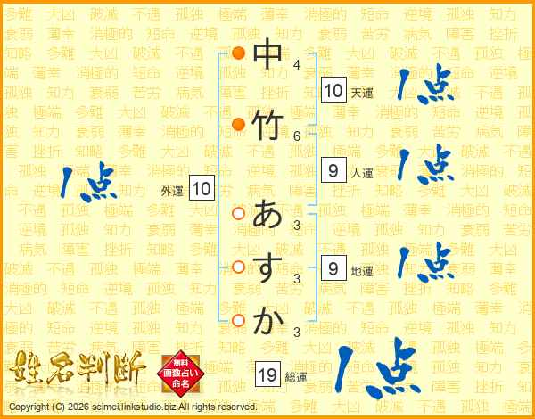 中竹あすかさんの総運は19画の1点!