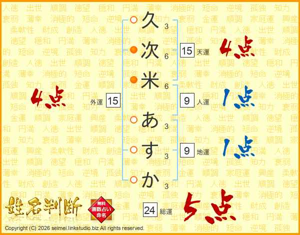 久(3画)次(6画)米(6画) あ(3画)す(3画)か(3画)