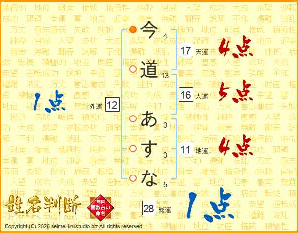 今道あすなさんの総運は28画の1点!