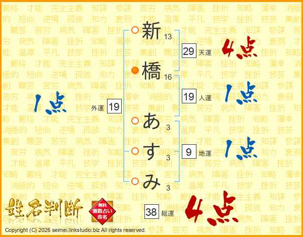 新(13画)橋(16画) あ(3画)す(3画)み(3画)
