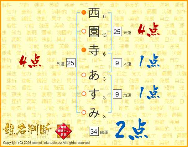 西(6画)園(13画)寺(6画) あ(3画)す(3画)み(3画)
