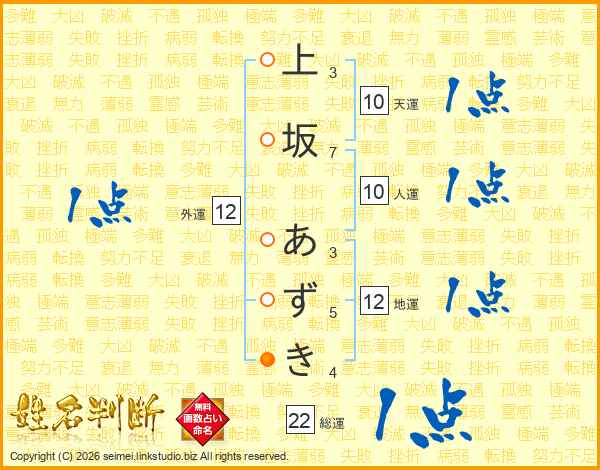 上(3画)坂(7画) あ(3画)ず(5画)き(4画)