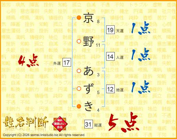 京野あずきさんの外運は17画の4点!