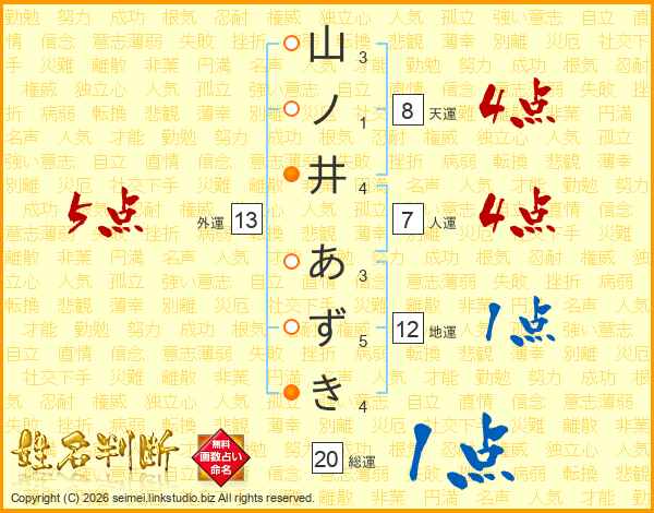 山ノ井あずきさんの総運は20画の1点!